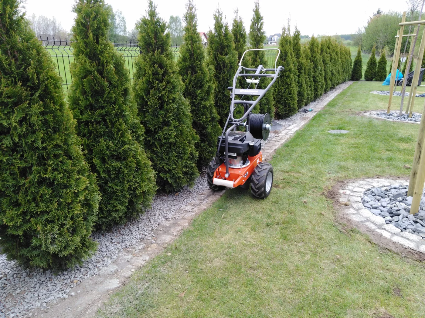 Do instalacji wykorzystujemy nowoczesne maszyny do układania przewodów ograniczających, które precyzyjnie wkopują przewód na głębokość 4-6 cm. Dzięki temu nie musisz obawiać się uszkodzenia trawnika podczas późniejszych zabiegów, takich jak wertykulacja. Co więcej, instalacja robota koszącego jest praktycznie niewidoczna, a trawnik wraca do pełnej formy już po kilku dniach.